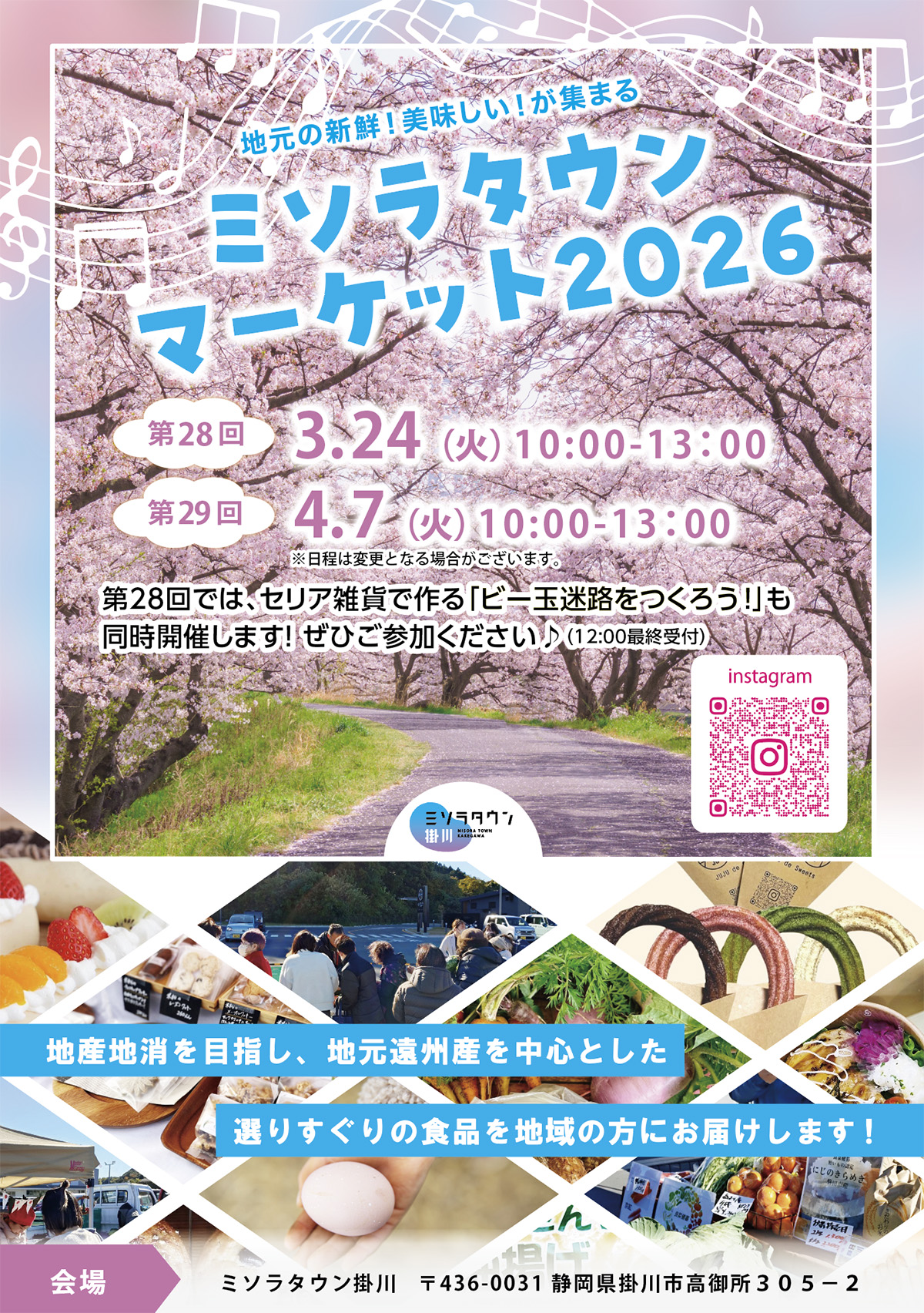ミソラタウン掛川の駐車場を活用したマルシェイベントを開催致します。